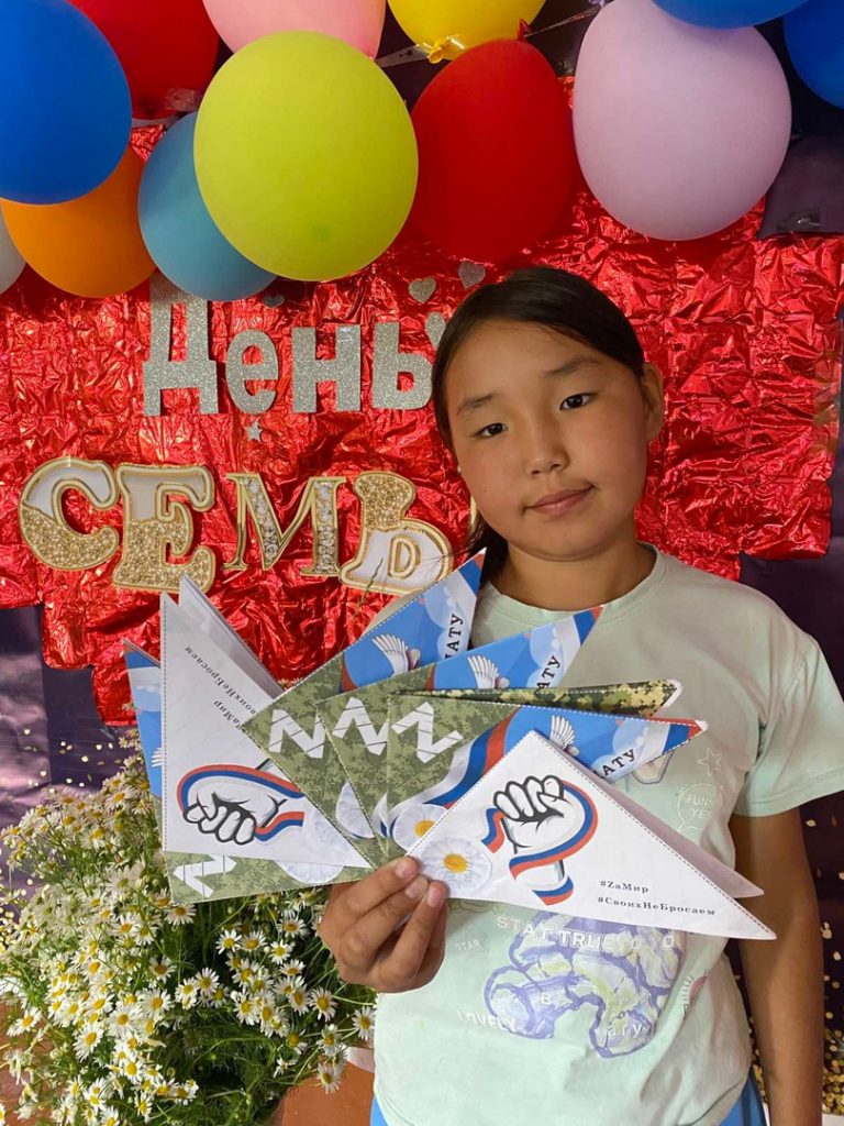 Опубликовано 10.07.2024День 13. День семьи 👨👩👧❤ 1. Закаливающие процедуры 2. Просмотр мультфильма «Сказ о Петре и Февронии Муромских» 3. Квест-игра «Семь Я!» ❤ 4. Письмо солдату 📨 5. Час творчества (развитие мелкой моторики, изготовление открыток, плакатов ко Дню семьи) ⭐ 6. Подвижная игра на свежем воздухе «Мама, распутай нитку» 7. Акция #Ромашкавладошке17 8. Изготовление букета из ромашек мамам 🖼 #Деньсемьилюбвииверности17 #Ромашкавладошке17 #8июля #письмоучастникуСВО17 #деньединыхдействий #ЛОК17
