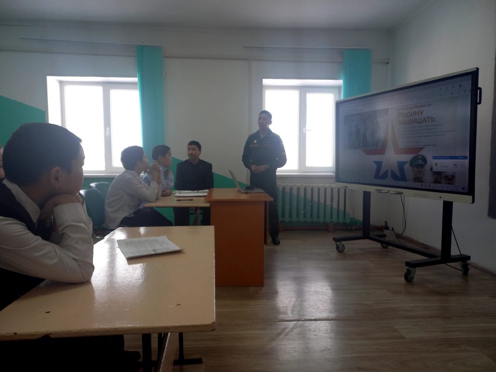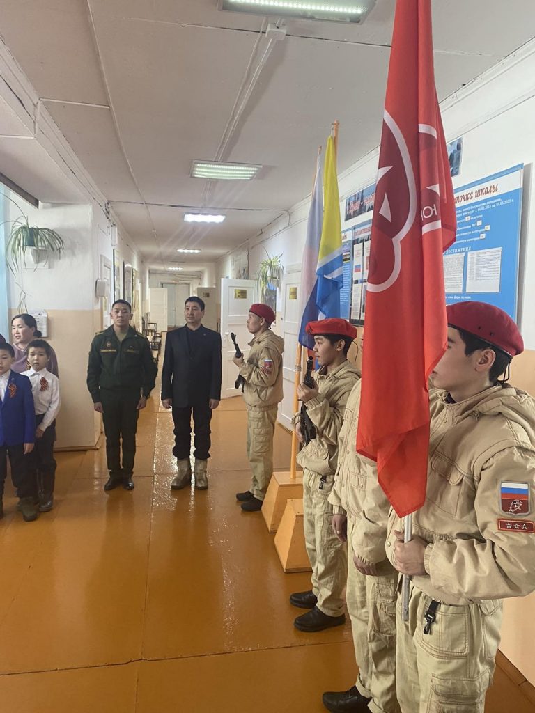 Сегодня, в рамках месячника оборонно-массовой, военно-патриотической работы и Всероссийской акции состоялась торжественная линейка и возложение венков к Уголку Славы. На мероприятии приняли участие старший помощник военного комиссара по профессиональнму психологическому отбору и организации призыва граждан на военную службу военного комиссариата Улуг-Хемского и Чаа-Хольского кожуунов Монгуш О.А., курсант Дальневосточного Высшего общевойскового командного училища Донгак Р.Р. Учащиеся 3 класса спели песню «Катюша». Проведена показательная разборка,сборка автомата, беседа о профессии военного
