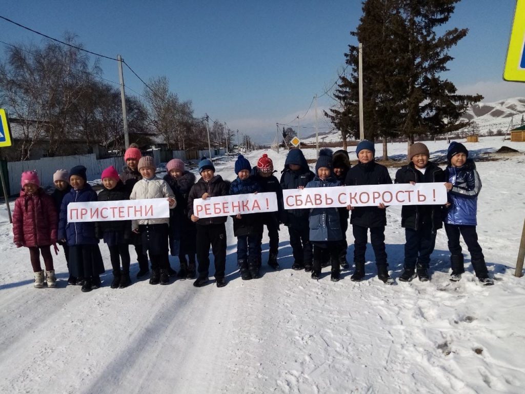 — призыв с наглядно-агитационными материалами (с плакатами) с лозунгом «Пристегни себя и ребенка!», «Сбавь скорость – тебя ждут дома!» вблизи пешеходного перехода образовательных организаций совместно с сотрудниками отделений ГИБДД МО МВД России по РТ;