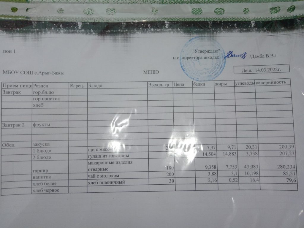 Меню на 14.03.2022