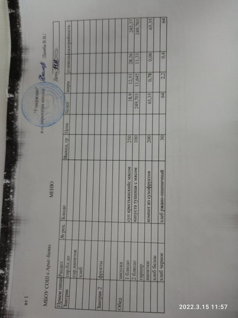 Меню на 15.03.2022