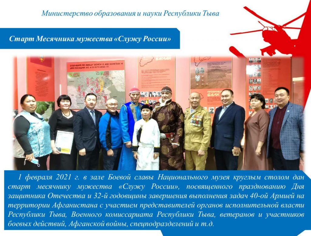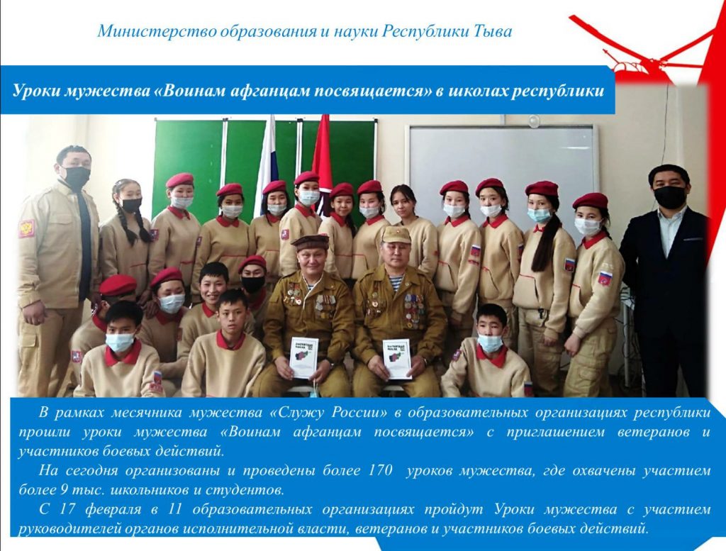 В рамках месячника мужества заместителем директора по ВР школы Спилиной Челээш Хереловной с целью воспитания чувства партиотихма, осознания себя частью современного общества для мальчиков юнармейского отряда проведён час мужества «Кодекс чести мужчин Тувы».