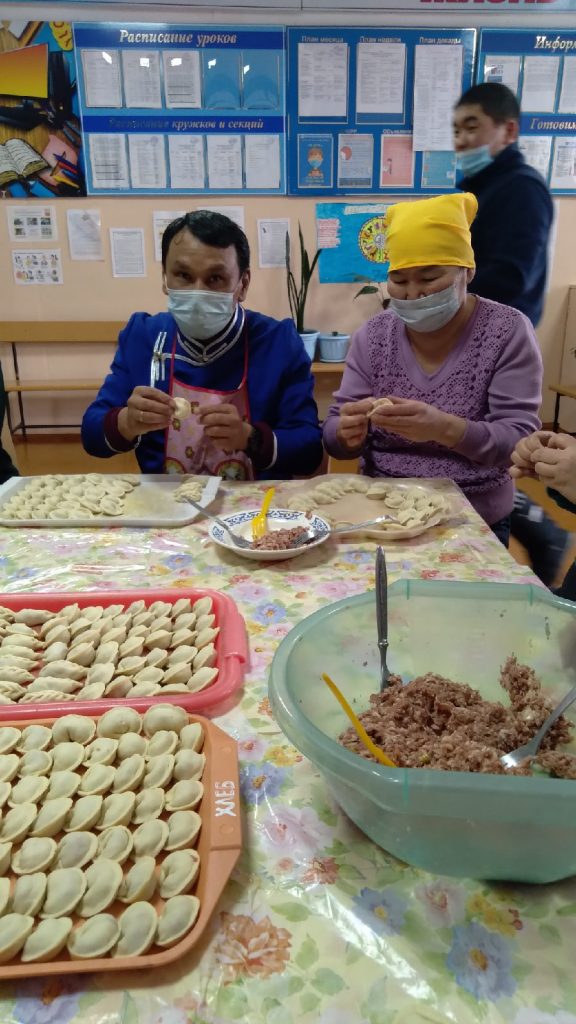В рамках благотворительной акции «Лепи добро» учащиеся старших классов и коллектив школы приняли активное участие в лепке тувинских пельменей с соблюдением всех санитарных норм.