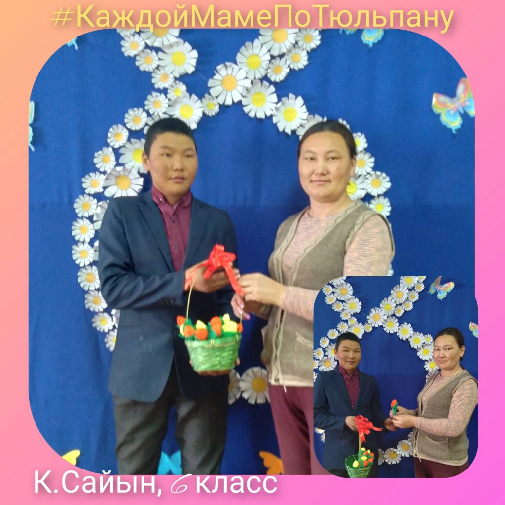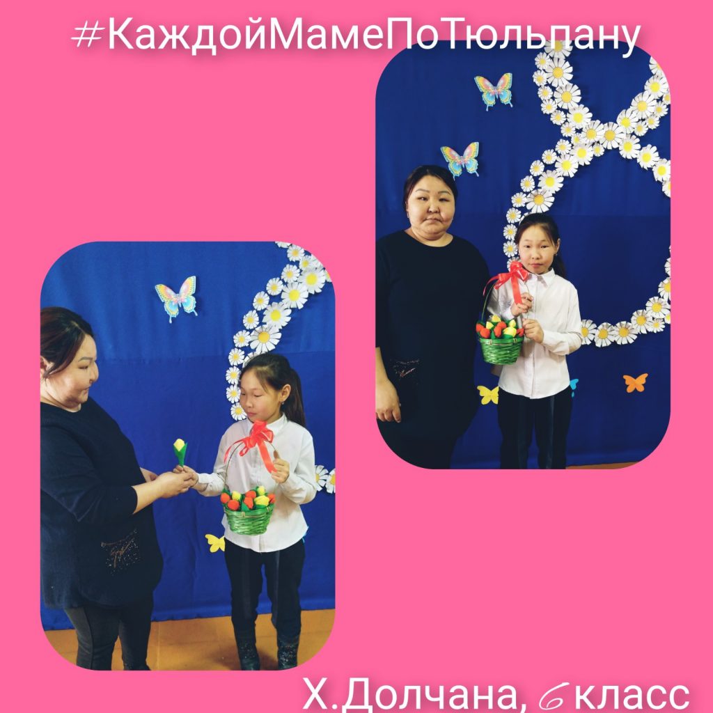 Ученица 6 класса Хактыг-оол Долчана участвует в акции «Каждой маме по тюльпану»
