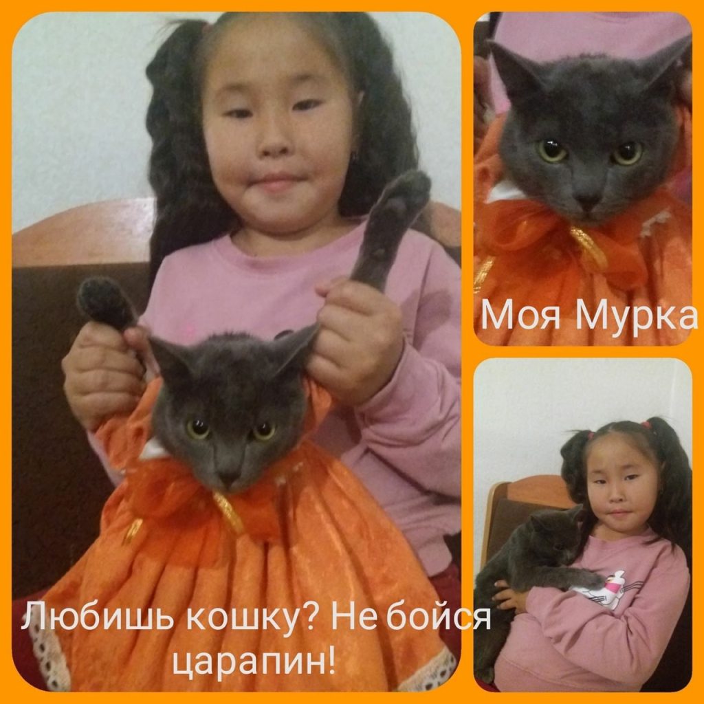 Участница под номером 4 школьного заочного фотоконкурса «Я и мой любимый питомец» -ученица 2 класса Хактыг-оол Радмила с кошкой «Муркой»