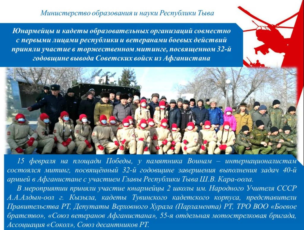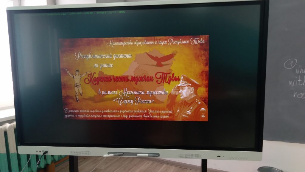 В рамках месячника мужества заместителем директора по ВР школы Спилиной Челээш Хереловной с целью воспитания чувства партиотихма, осознания себя частью современного общества для мальчиков юнармейского отряда проведён час мужества «Кодекс чести мужчин Тувы».
