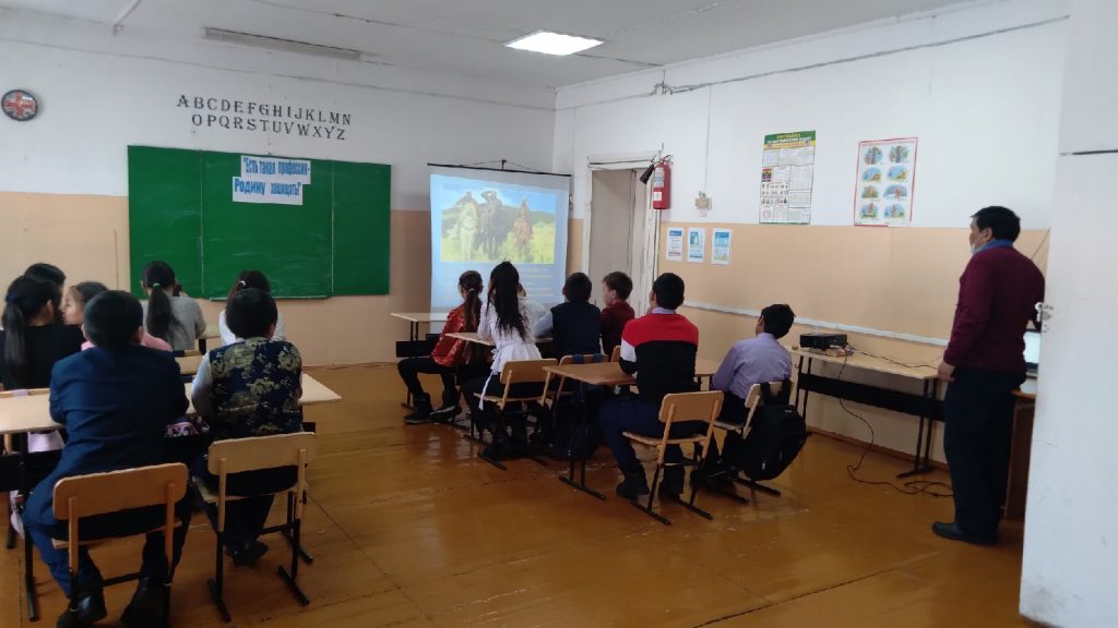 В рамках месячника мужества «Служу России» с уелью воспитания чувства патриотизма и любви к Родине педагогом-мужчиной Сендажы А.О. проведен Урок мужества «Есть такая профессия — Родину защищать!» для 5-6 классов.