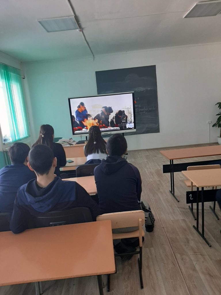 Просмотр фильма про воинов-интернационалистов с общим охватом 45 учащихся.