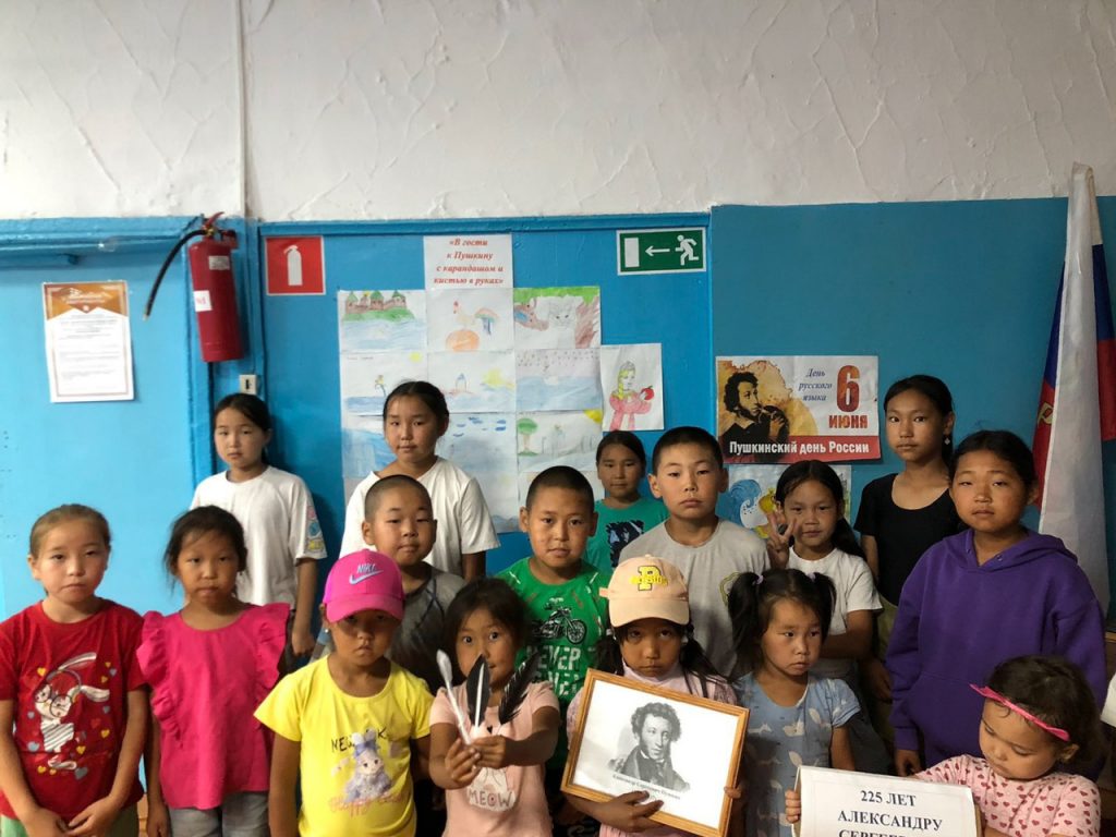 В честь дня книги, с целью познакомить детей с творчеством и биографией писателя А. С. Пушкина посетили сельский клуб им. Т. Кара-оола. Детям рассказали про писателя, потом дети читали произведения Пушкина