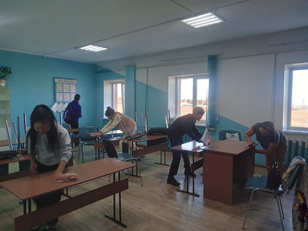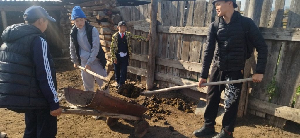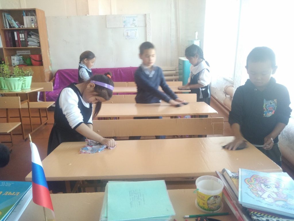 7 класс вместе с классным руководителем Балдан А. С. в честь дня пожилого оказали тимуровскую помощь Чадамба С. О.